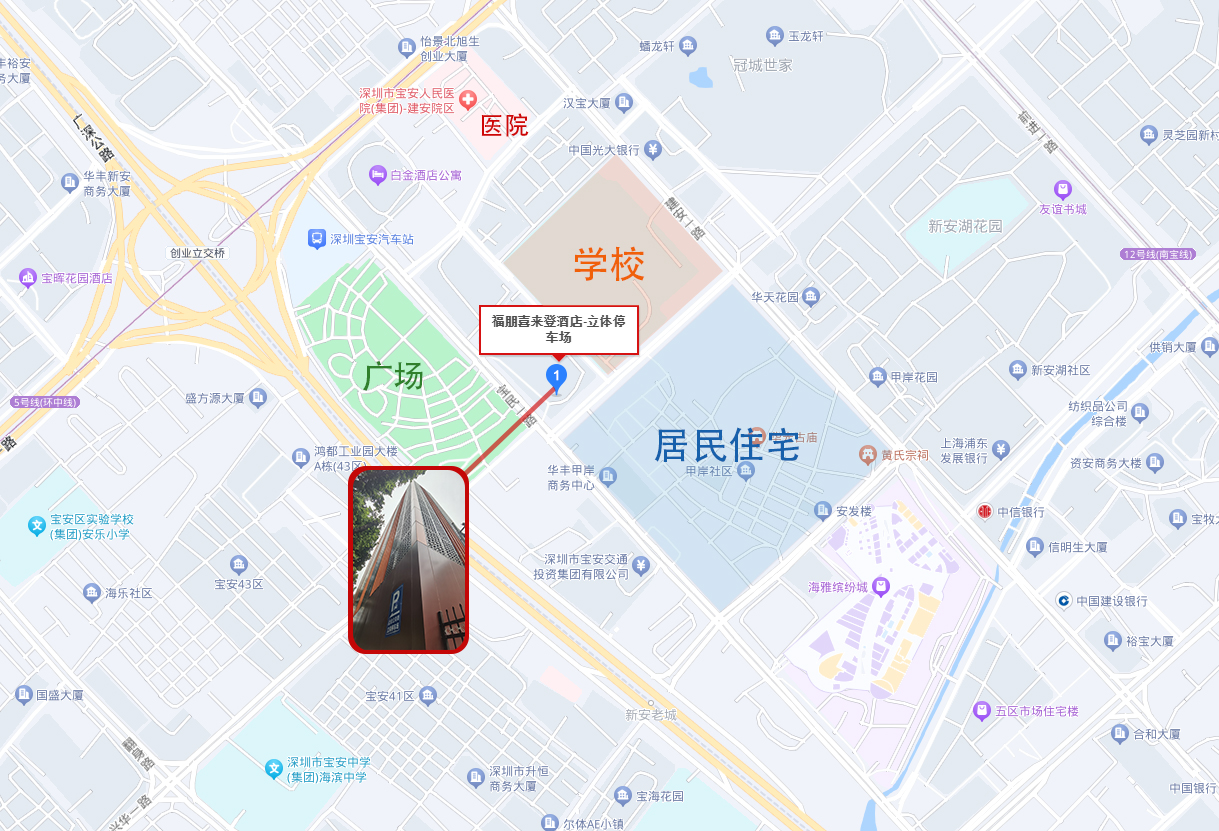 福朋喜來登立體停車場坐落于深圳市寶安區(qū)中心地帶,位于知名五星級酒店福朋喜來登的東南側,新安中學西南側,向東與甲岸社區(qū)(住宅小區(qū))相望。